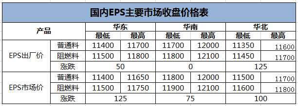 收盘验证:EPS(聚苯乙烯)企业价格持稳居多,整体波动幅度0-125元/吨,基本符合买塑网早间预测幅度。
